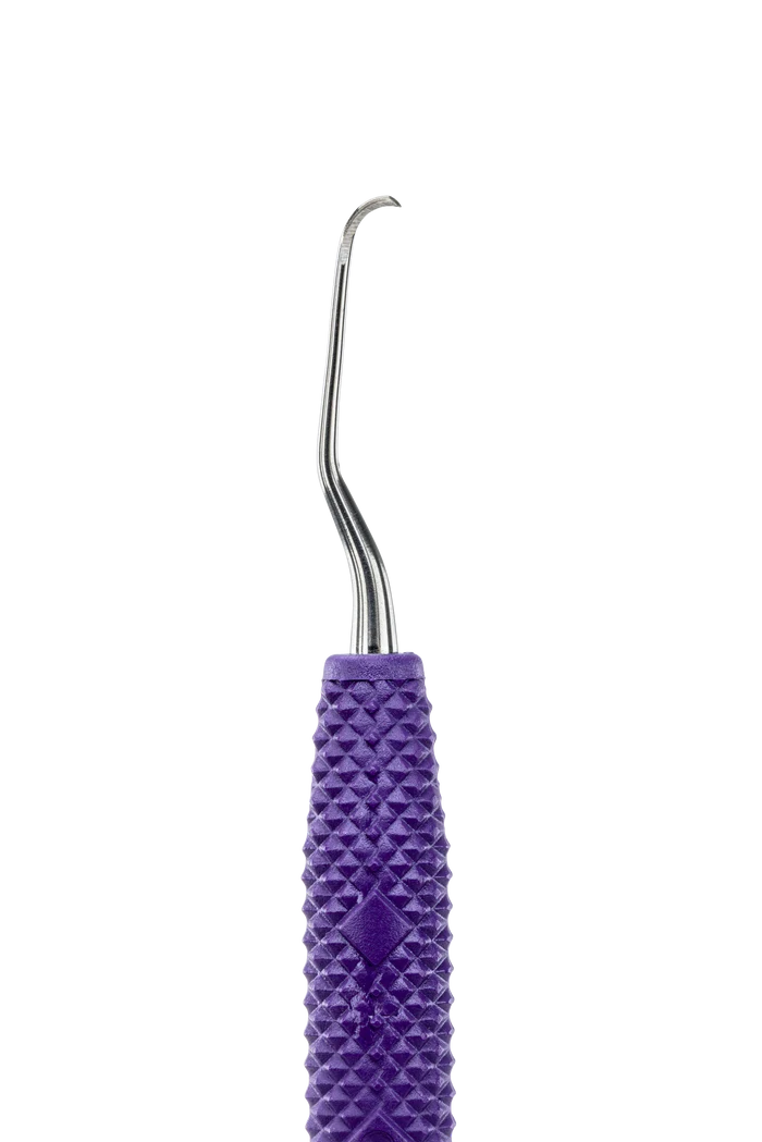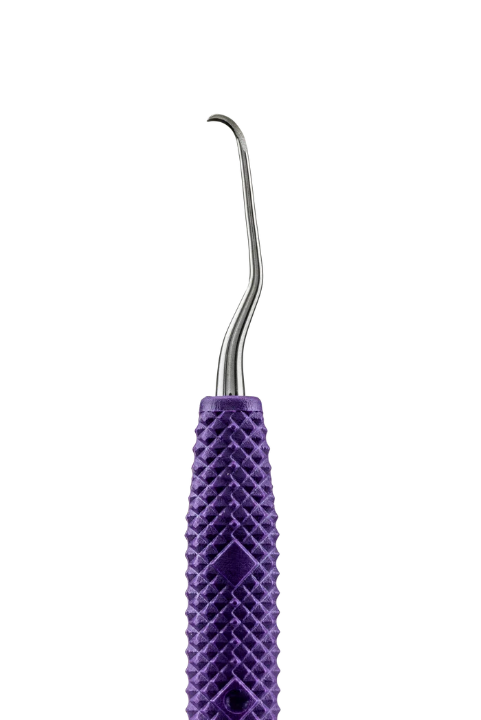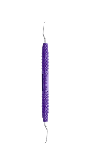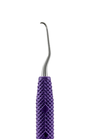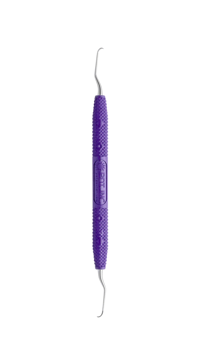 The PDT Amazing Gracey™ 00 has a long, straight terminal shank, smaller working toe, and short blade length. Designed for narrow and anterior pockets. Purple handle designates anterior usage. The continuous curve of PDT’s Amazing Gracey™ blade comfortably adapts without rotation, providing less tissue distention and more efficient, effective, and ergonomic procedures. Reduce your pinch force with PDT’s tactile sensitive, light-weight, color-coded handle.