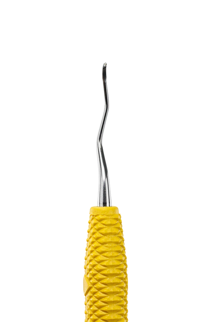 The PDT Amazing Gracey™ 9-10 is designed for use on molar buccal, and molar lingual, surfaces. The continuous curve of PDT’s Amazing Gracey™ blade comfortably adapts without rotation, providing less tissue distention and more efficient, effective, and ergonomic procedures. Reduce your pinch force with PDT’s tactile sensitive, light-weight, color-coded handle.
