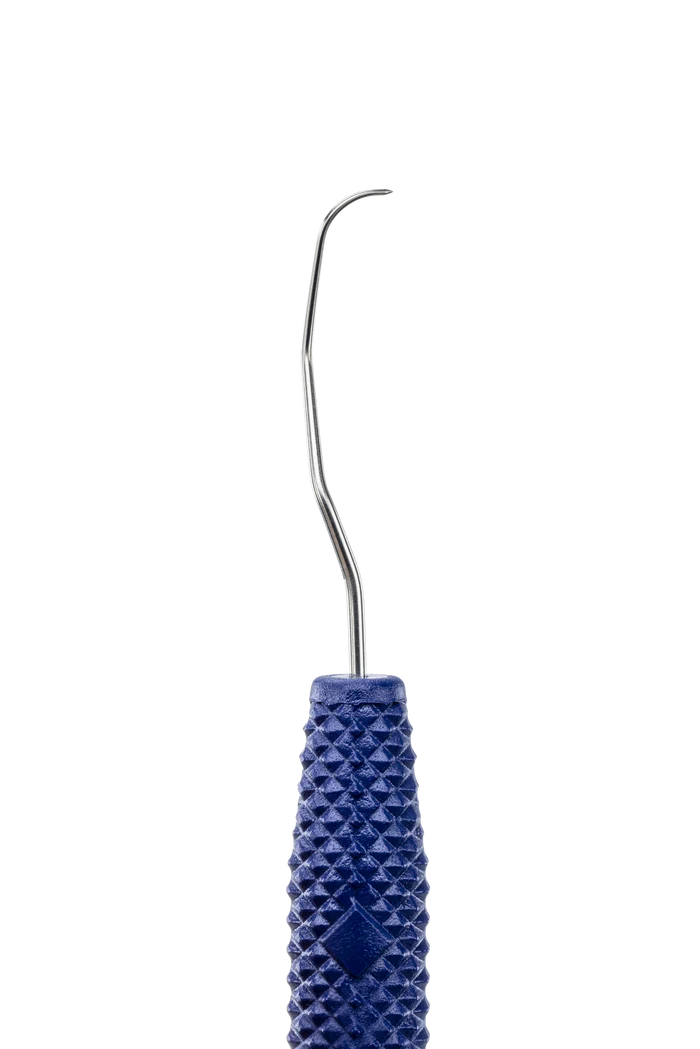 The PDT 11-12 Extended Reach Explorer has a tighter radius on the bends, plus an extended terminal shank, that allow for more adaptive, interproximal access for better calculus detection in deeper pockets. ODU stands for Old Dominion University.