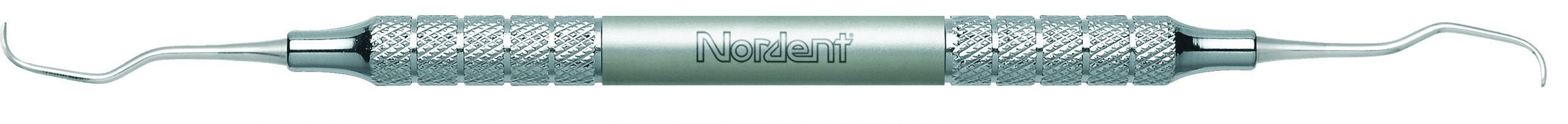 Short contra-angle for incisors and cuspids. Terminal shank reach is 11 mm. Nordent standard Gracey curettes feature a blade face curve with a true radius that conforms to tooth anatomy better than any other brand. This means that Nordent standard Gracey curettes are easier to adapt, require fewer strokes, and reduce tissue trauma better than any other brand. Nordent standard Gracey curettes have a 1.1 mm terminal shank diameter and blades that are 0.9 mm wide and 4 mm long. Featuring our Relyant® Handle, additional handle options are shown below.