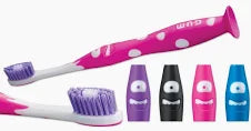 Comfortable Dome Trim® bristles gently remove plaque, dislodge food and massage gums. Assortment of colors: black, blue, pink, purple.