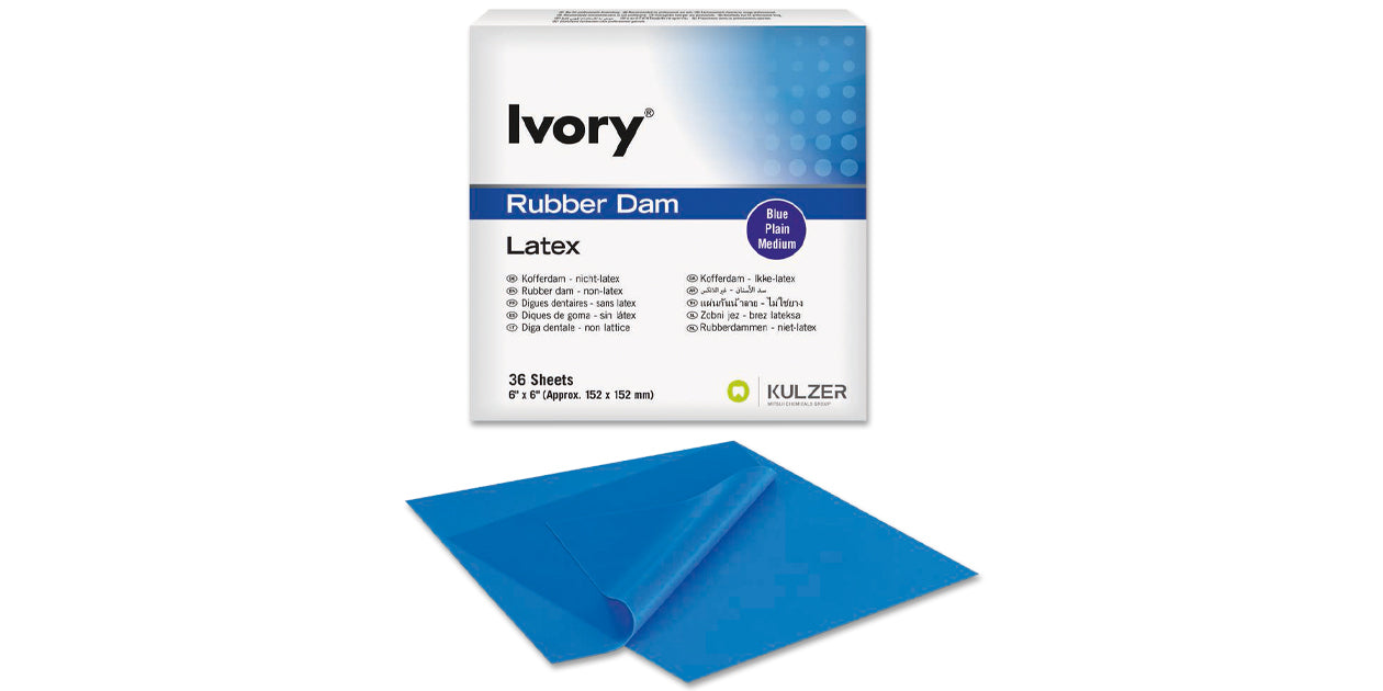 Ivory® rubber dam is manufactured from natural latex and undergoes a special washing step during the manufacturing process to reduce surface proteins.