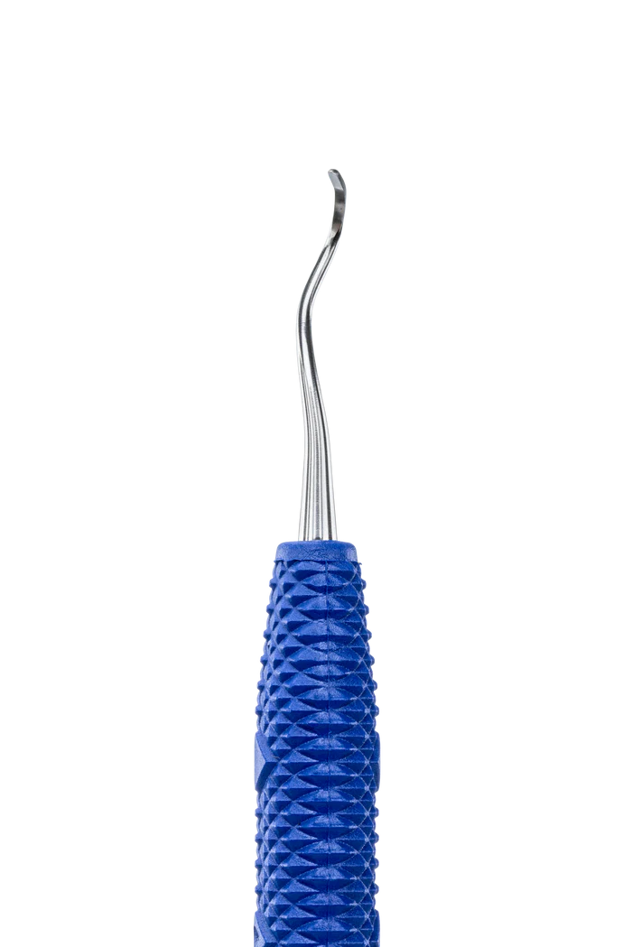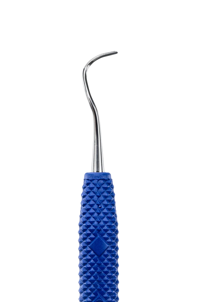 The PDT McCall 17-18 features a long, curved universal blade with two cutting edges and a rounded toe.