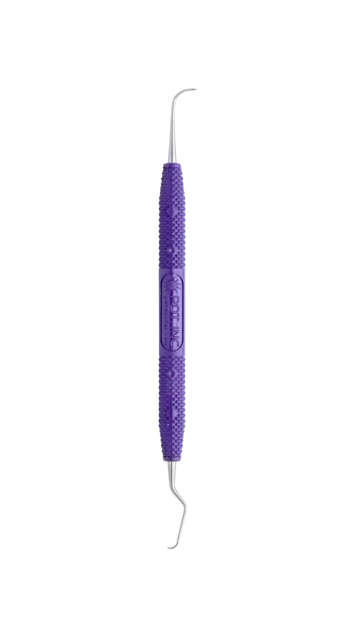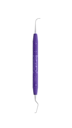 The PDT NEB 128-L5 Mini is a 2-in-1 anterior instrument with a Nebraska 128 on one end for narrow, interproximal access coupled with a Langer 5 Mini universal curette on the other end that increases subgingival adaptation designed for the narrower anterior anatomy.