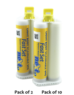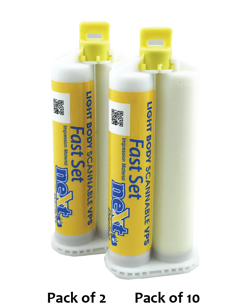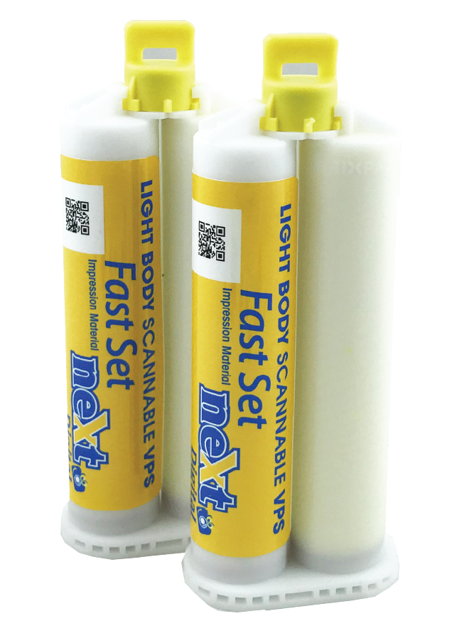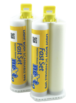 Next Digital VPS Impression material is European-made with superior quality -- it is vacuum packed to eliminate bubbles and bad mixtures that can pull, tear, or drag. The Next Digital VPS Impression System is completely digital scannable, eliminating the need to pour stone models. Moving your Next Digital VPS into the stage of Digital Dentistry and 3D Cad/Cam Technology.