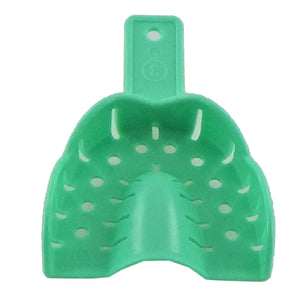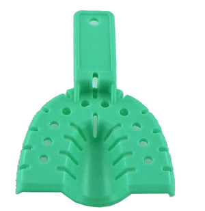 Next VPS Medium Green Upper Full-Arch Perforated Plastic disposable impression tray. Top of tray is curved for patient comfort and accurate impression. Bag of 50 trays.