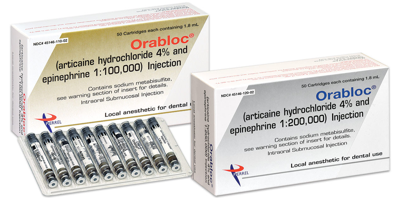 - Each Orabloc® individual cartridge is blister packed for maximum protection during storage and handling
