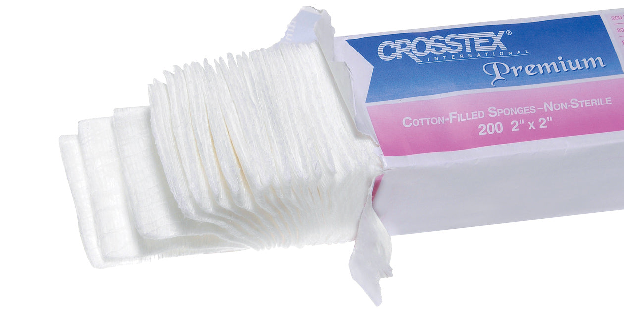 High quality sponges made from pure, medical grade, virgin white cotton. 100% cotton-fiber filling. Soft and highly absorbent. Choice of non-sterile or sterile sponges.