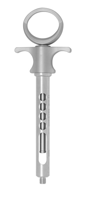 Self aspirating syringe holds 1.8cc. Lightweight and features a comfort fitting thumb ring that provides a secure grip for multiple hand sizes. The self-aspirating mechanism works by a little bump at the end of the syringe compressing the diaphragm of the anesthetic cartridge during injection. When the pressure of injection is released there is the relaxation of the diaphragm, thus creating negative pressure. In self-aspirating needles and syringe system, aspiration can occur only after injection has been started. Made in the USA, the syringe is lightweight to prevent fatigue and has no removable parts.