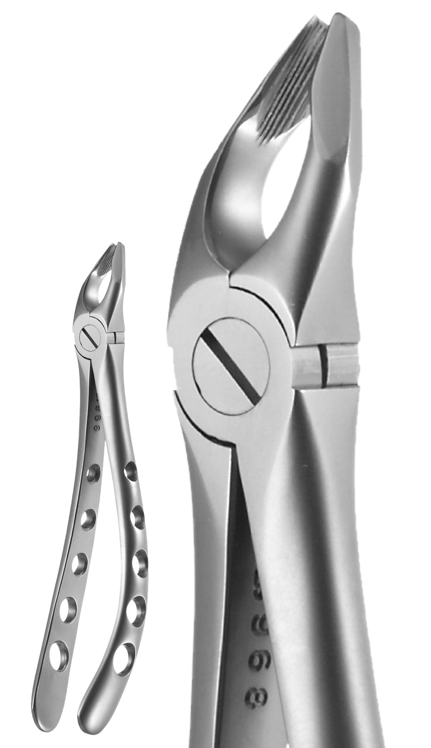 These Upper Molar Forceps can be used universally on both the right & left side of a patient's mouth. The cross serrations provide an optimum grip when extracting teeth in the molar region. While the grip it holes in the handle provide reduced weight, improved tactile sensation, and fewer hygiene critical zones. The forceps are made in Germany from 100% stainless steel.